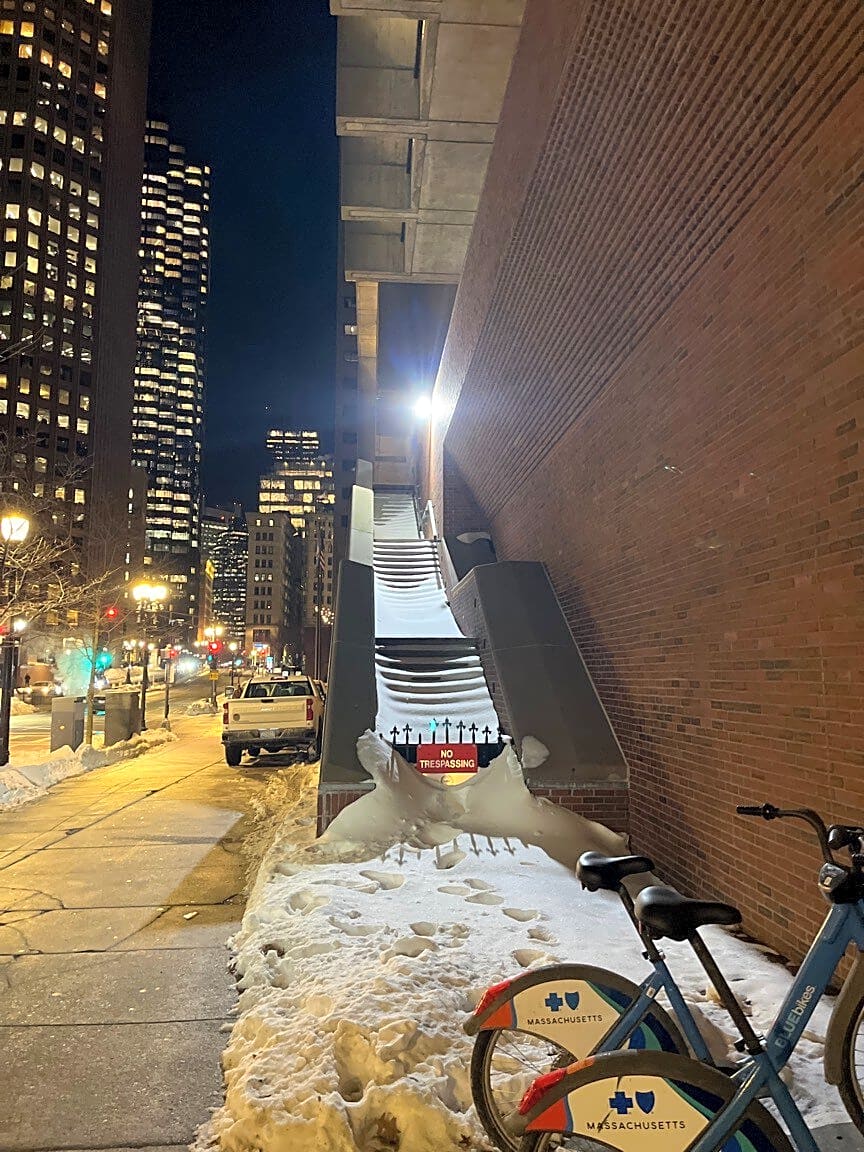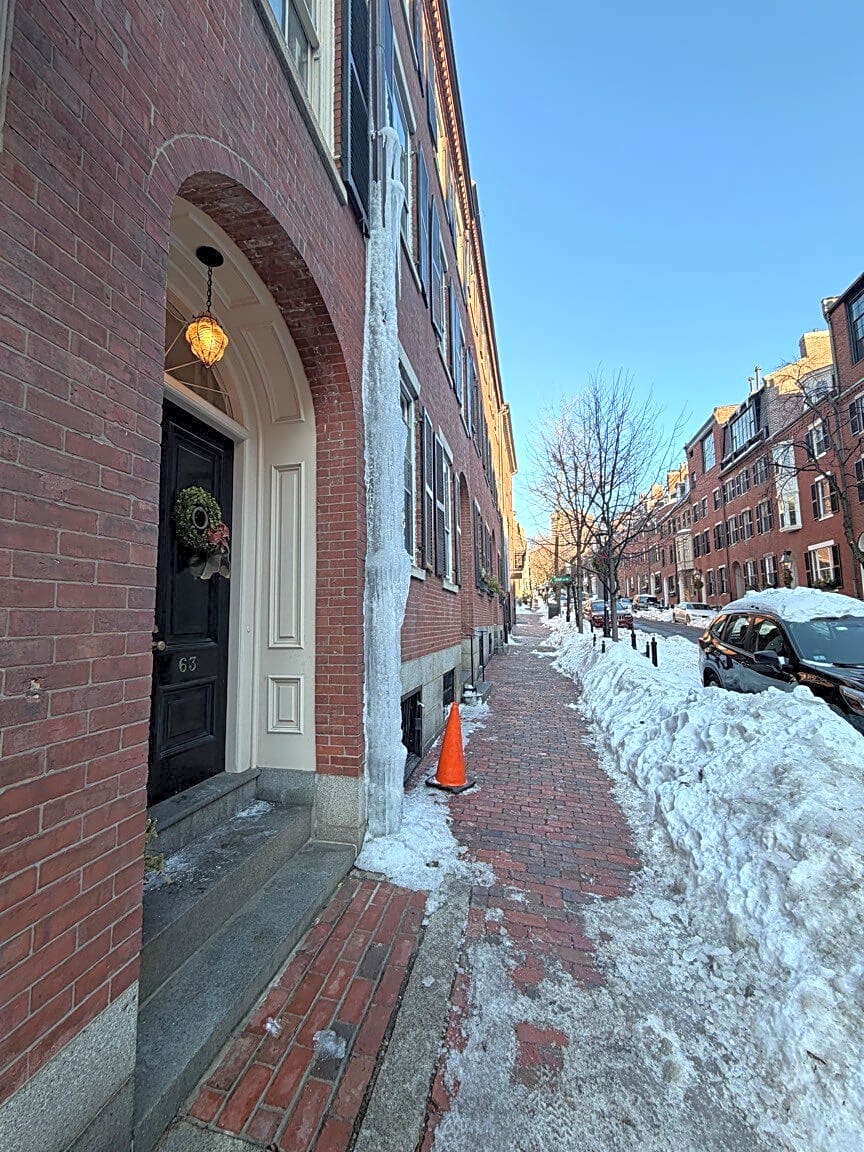 63 Chestnut St, Boston, Ma, 02108More ice on sidewalk and falling from pipes. Chunks all over. Not passable. Please ticket. 63 Chestnut. No one seems to care.