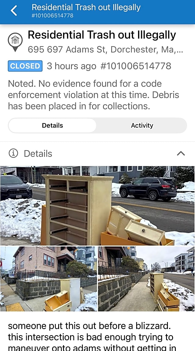 232-234 Dorchester St, Boston, MA 02127Big Tree branch in road