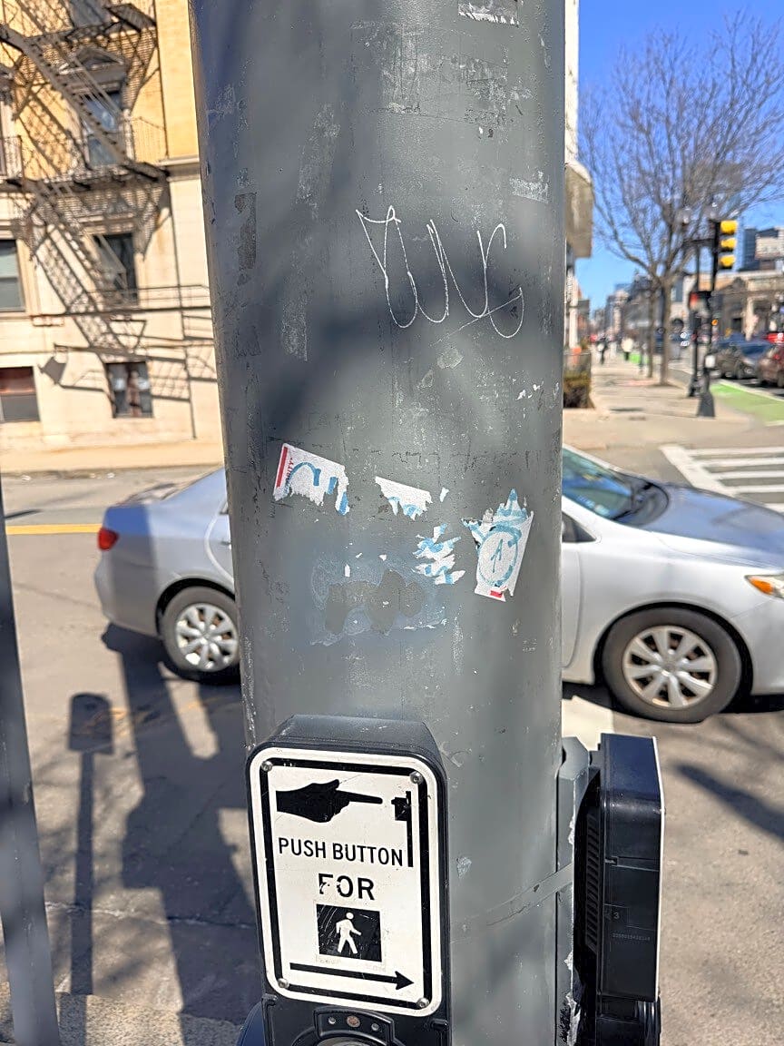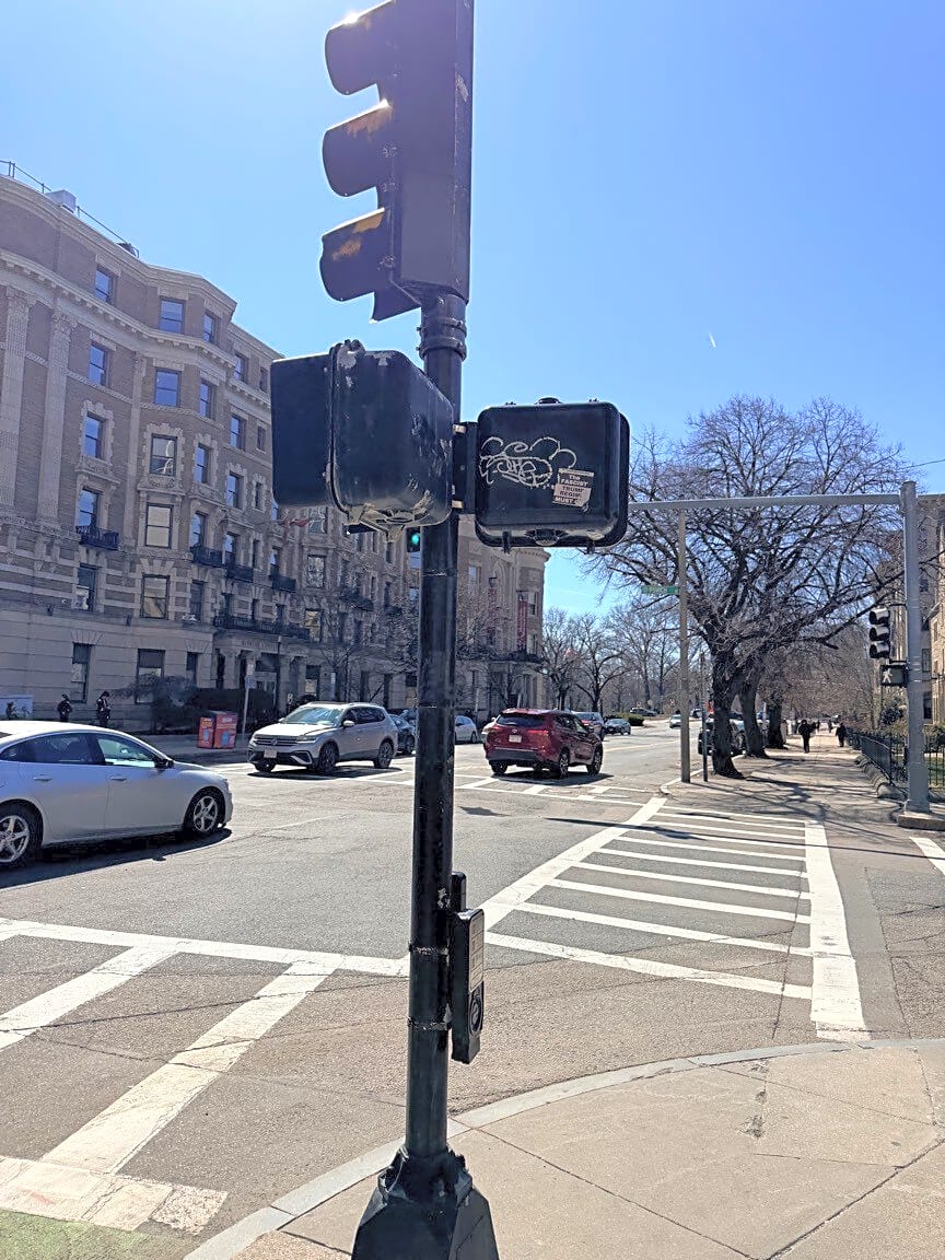 Intersection Of Hemenway St And Boylston St, Boston, MaGraffiti back of crosswalk signal