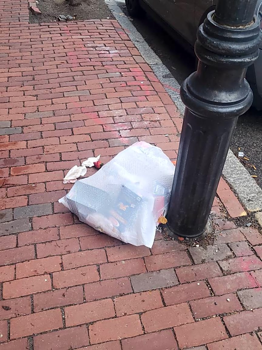 Intersection Of Grove St And Revere St, Boston, MaTrash out after collection time