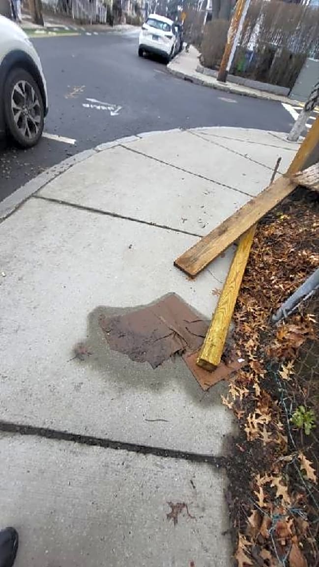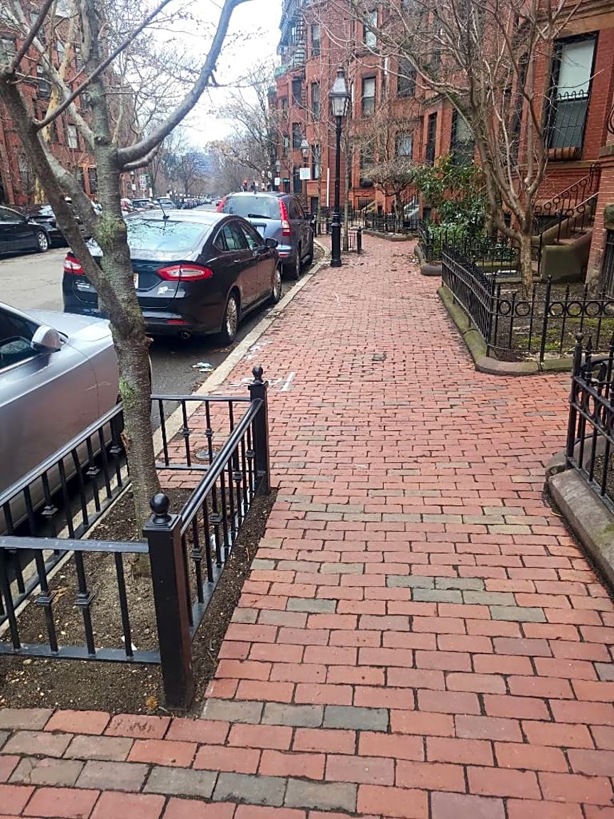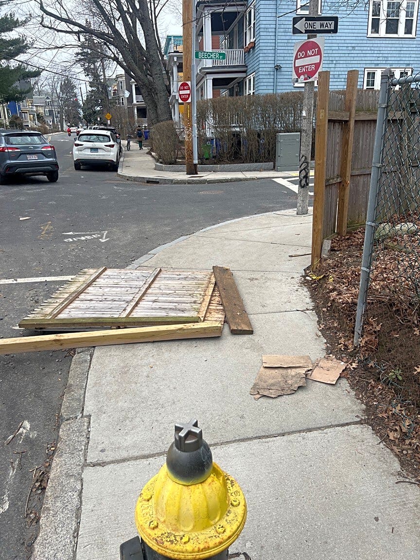 Intersection Of Beecher St And Boylston St, Jamaica Plain, MaFence is left on the sidewalk and street