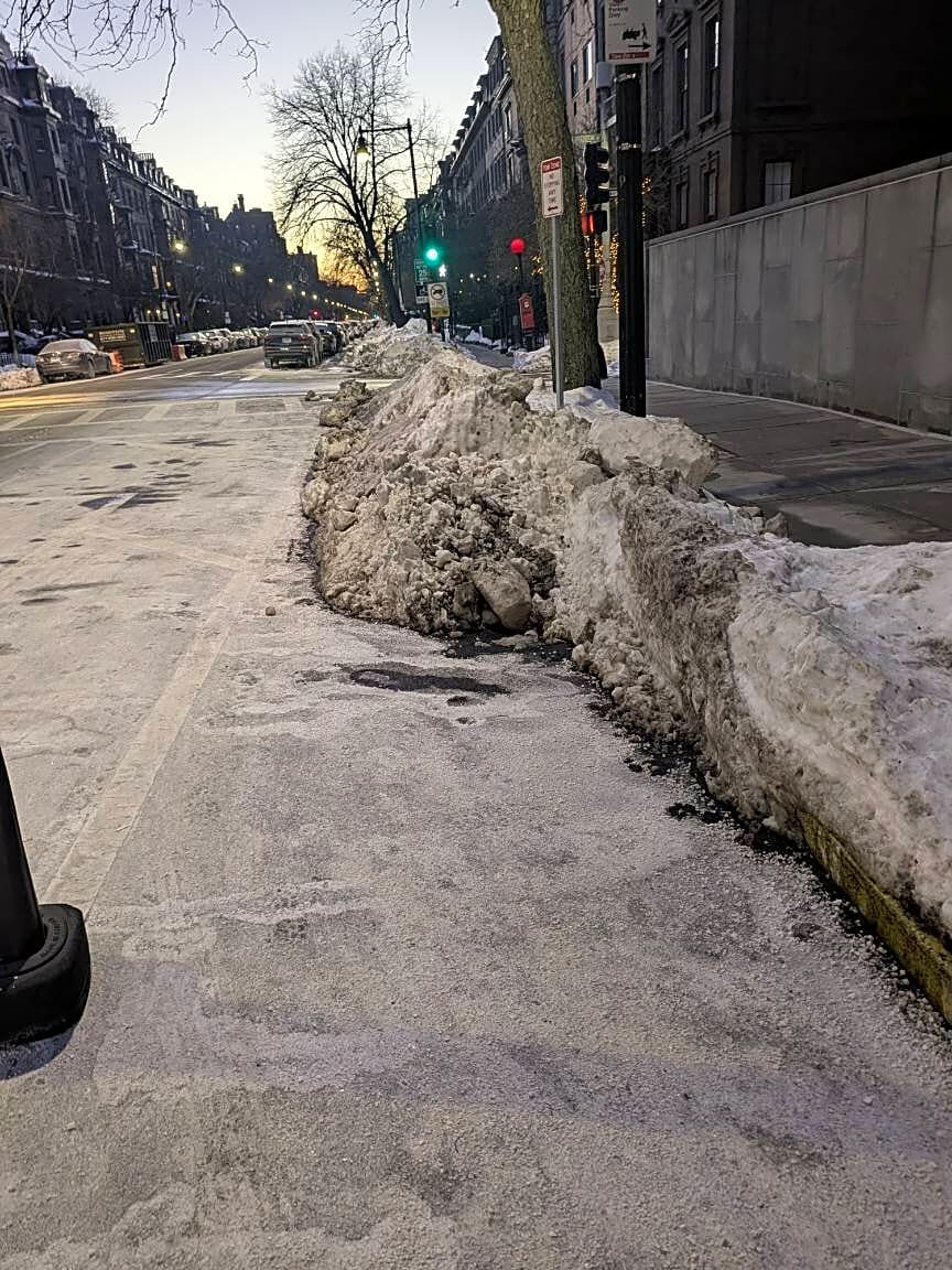 Intersection Of William T Morrissey Blvd And William J Day Blvd, South Boston, MaSidewalk not shoveled at Moakley Park on the Day Blvd side, several inches of snow on the sidewalk