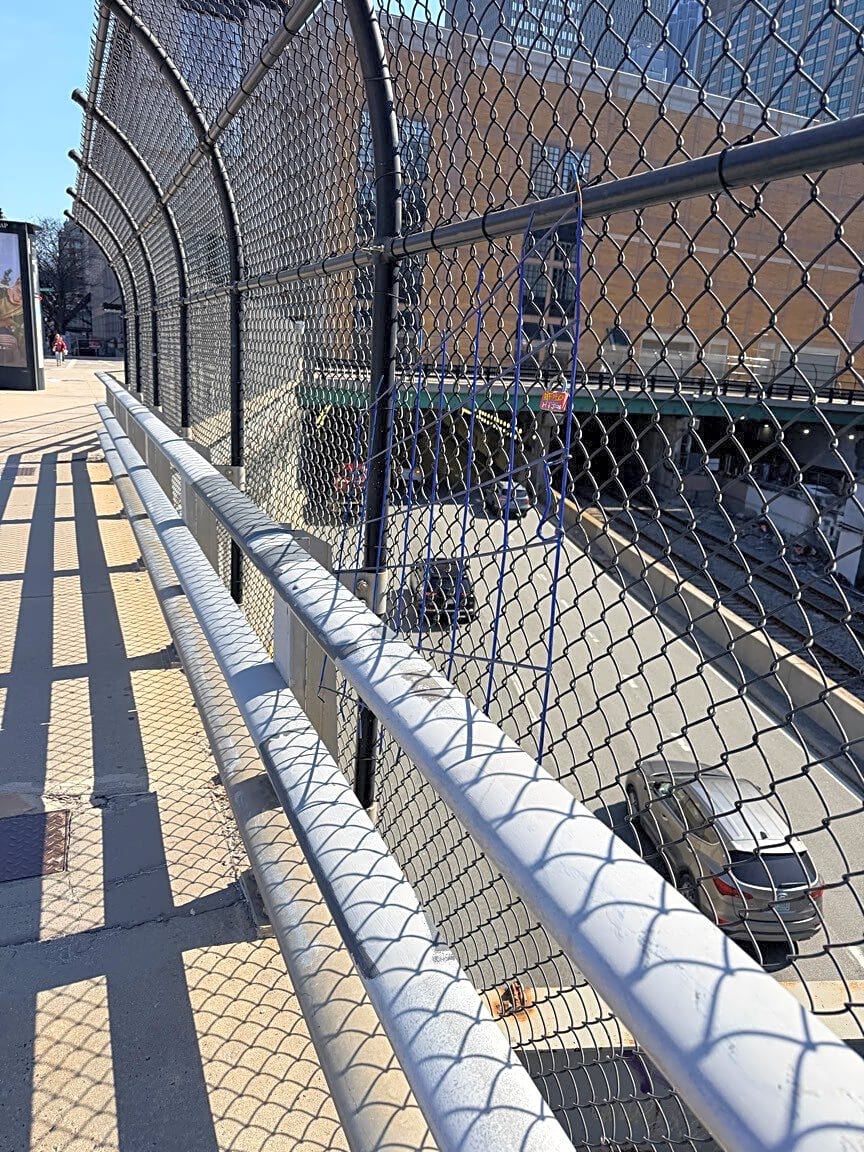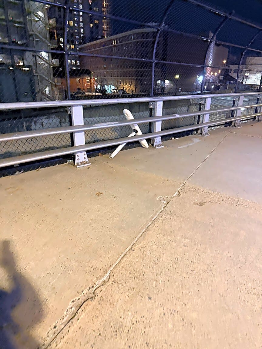 988 1002 Boylston St, Boston, Ma, 02115There is trash - bike bollard and grates - lodged in between the barrier and fencing over Mass Pike on Boylston / Cambria Streets.